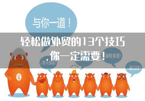 轻松做外贸的13个技巧,你一定需要! 简单来说,做外贸就是用外语和外国人谈生意、达成共识、做单、交货、收外汇。然而,在实际操作中,要做好外贸是一个大学问,要懂得一定的技巧,做起来才能更加地顺畅。那么,到底怎...