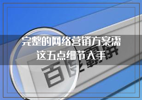 完整的网络营销方案 需这五点细节入手 在我们制作任何方案之前,都需要先构思方案的路线,就像网络营销方案一样,我们在入手做网络营销的时候,需要从各个层面考虑,大到网站框架构思,小到文字颜色,一份完整的网络营...很赞哦! (7)